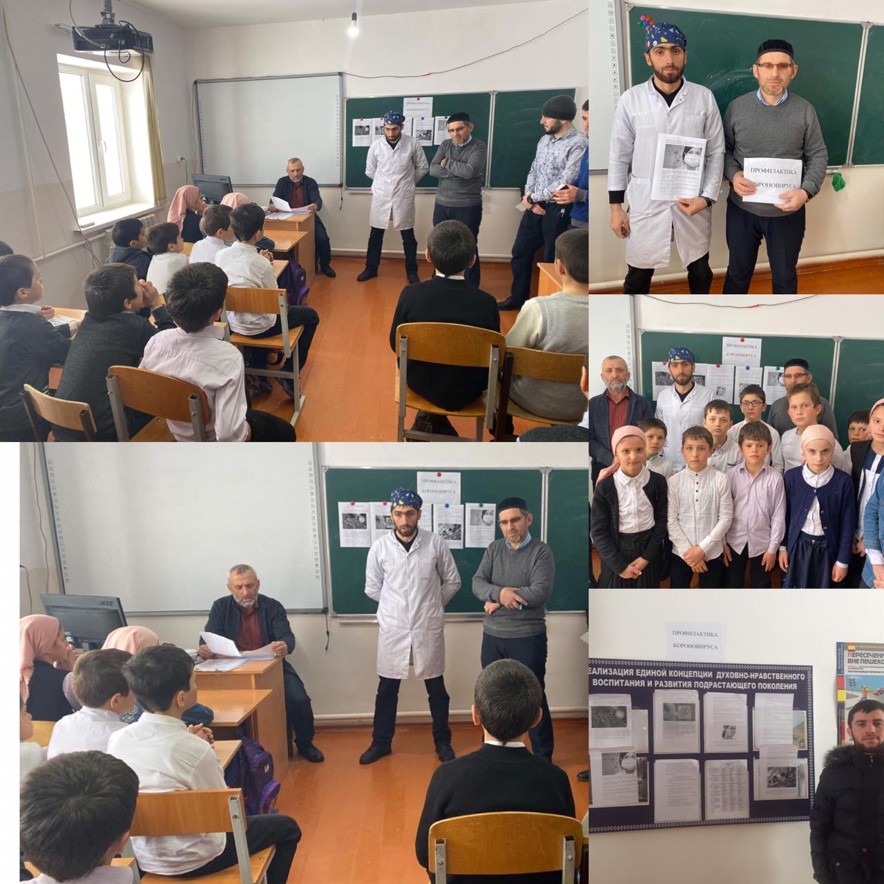 В МБОУ"СОЩ№3 с.Кенхи"совместно с фельдшером села Муртазалиевим М.М.провели профилактическую беседу с учителями и учащимися по теме " Профилактика и дезинфекция КОРОНОВИРУСА"