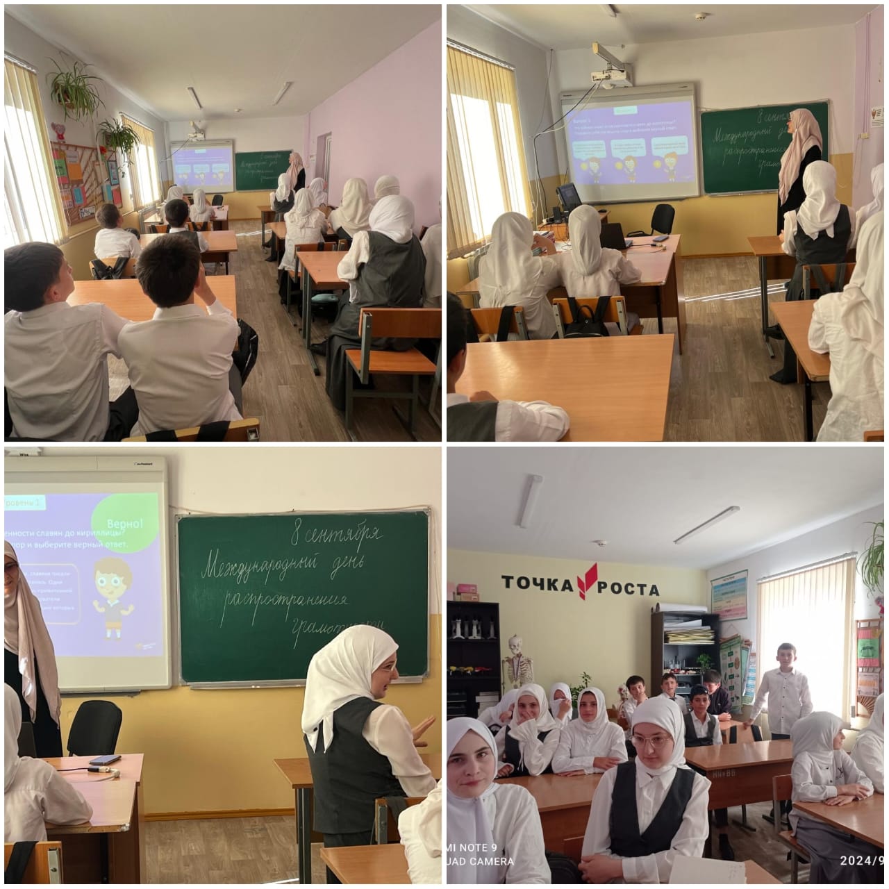09.09.2024Международный день распространения грамотностиЕжегодно во всем мире 8 сентября отмечается Международный день грамотности. Свою историю он отсчитывает с 1966 года, когда по итогам Всемирной конференции министров образования в Тегеране ЮНЕСКО учредило праздник.В рамках международного дня грамотности, советником директора по воспитанию Сегитовой Л.Д. был проведен исторический турнир «Грамотность на Руси» с учащимися. В ходе мероприятия ребята узнали много нового о том, как на Руси зарождалась и развивалась письменность, какими были первые книги и кто создавал их своими руками.Игра началась с рассказа о первых славянских азбуках, которые создали Кирилл и Мефодий. Шестиклассники с интересом слушали о том, как буквы образовывались из простых линий и точек и как из этих символов начали складываться слова и предложения. Дети с увлечением угадывали старославянские слова и сопоставляли их с современными.Также был проведён кинолекторий "Путешествие в мир грамотности": «В стране невыученных уроков», «Слоненок пошел учиться», «Как верблюжонок и ослик в школу ходили», «Наш друг Пишичитай».Ребята посмотрели мультфильмы и сделали вывод, что грамотность — это не просто умение читать и писать, но и ключ к пониманию мира вокруг нас.Ребята обсудили, как знания, приобретённые через чтение и обучение, могут изменить их жизнь, расширив горизонты и формируя личность.Грамотный человек всегда вызывал уважение, на него равнялись, к нему прислушивались.Ребята были полны впечатлений и новых знаний, а также ощутили важность и ценность сохранения и распространения грамотности в современном мире.