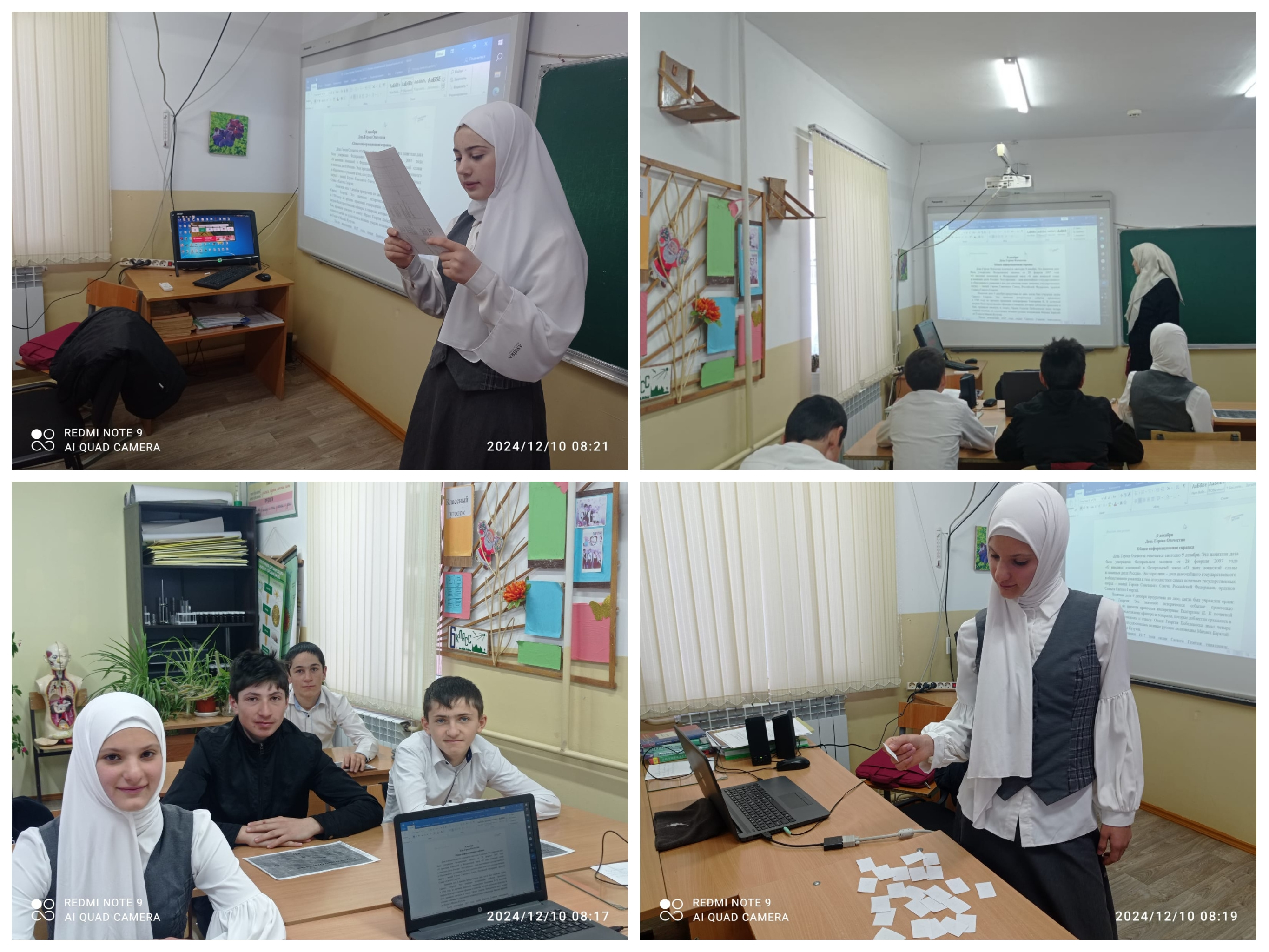 В преддверии праздника советник директора по ВР Сегитова Л.Д. провела для обучающихся 5–9 классов Уроки мужества «Герои Отечества». Она рассказала ученикам об истории праздника и о том, кому и за какие заслуги присваивается звание Героя.