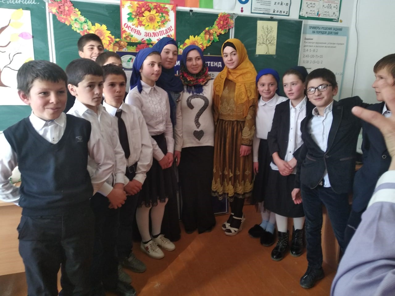 Малика Саадулаевна активно организовали праздник. Оформление праздничное. Участие приняли 5 и 6 классы, также учащиеся с 9 класса Насибова Милана и Шуайбова Табарака.